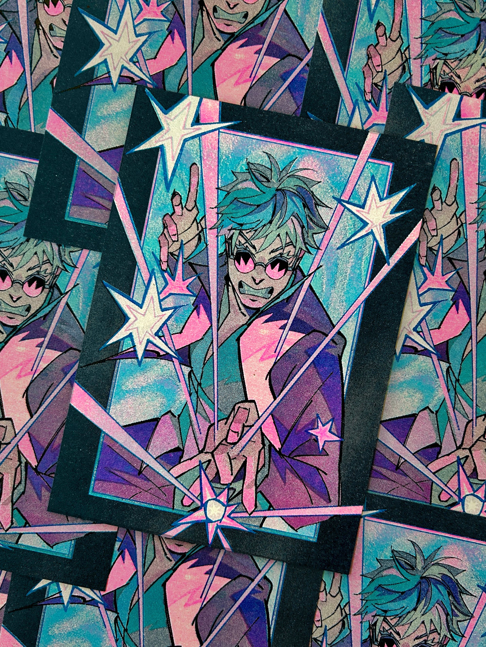 5 in x 7 in Riso print on 60lb cream speckled cover paper.